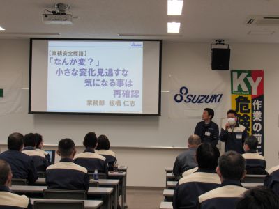 鈴木工業株式会社では、お客様に安全かつより良い品質でサービスをお届けするために、安全に対する意識及び技術力並びに接遇等の向上を目的とした社内研修会を定期的に行っております。